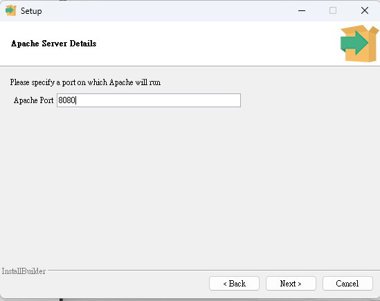 - 為 Apache 配置 port(可以保留預設值),然後按下 「Next」