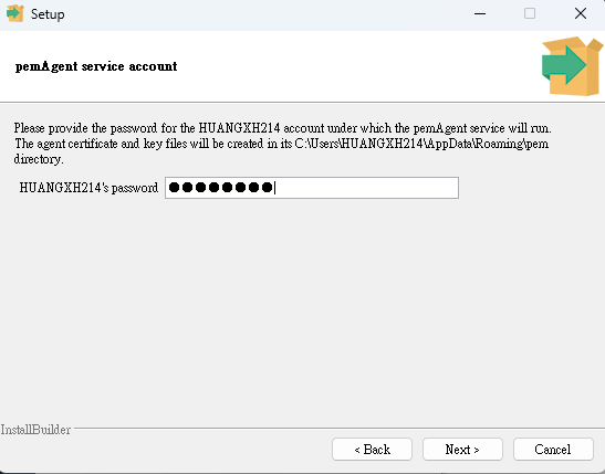 提供 PEM 代理的密碼(系統使用者的密碼),然後下一步。