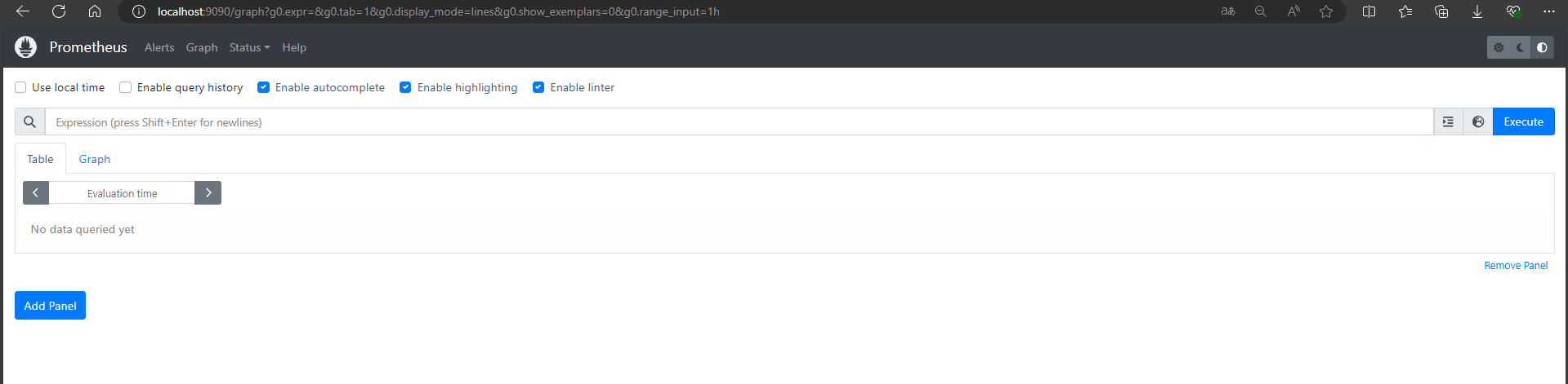 • 您可以在瀏覽器中訪問 http://localhost:9090 查看 Prometheus 的界面。